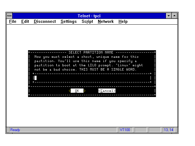 After the partition has been identified, name the partition as shown in Figure 4.10. Again, a simple name is best, so enter DOS or OS/2 as applicable. Don't bother with fancy names; they are more trouble than they are worth!