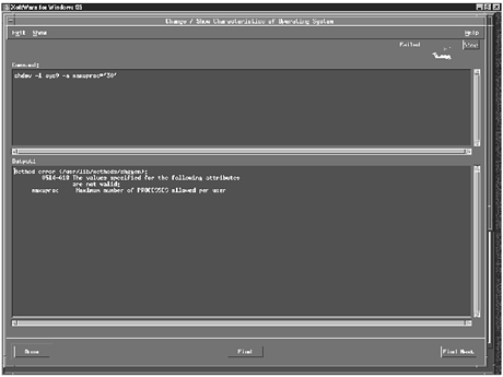 Step 4--Change "Maximum number of PROCESSES allowed per user" to "50" in the "Change/Show Characteristics of Operating System" menu. Do this by selecting the field for "Maximum number of PROCESSES" with your mouse. Then change the current value in the field to "50."