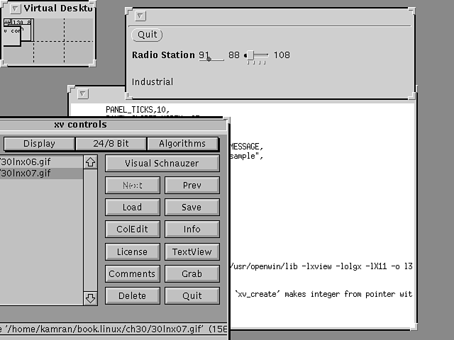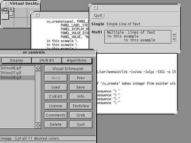This chapter is a very brief introduction to the XView packages available under Linux. In this section you have learned a little about putting user interface items together on a panel. You should now have enough knowledge to start creating your own