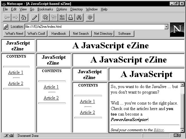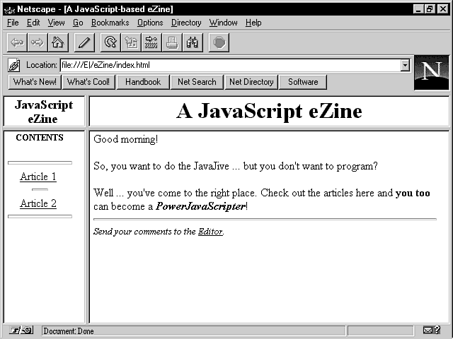 <TITLE>A JavaScript-enabled eZine</TITLE>