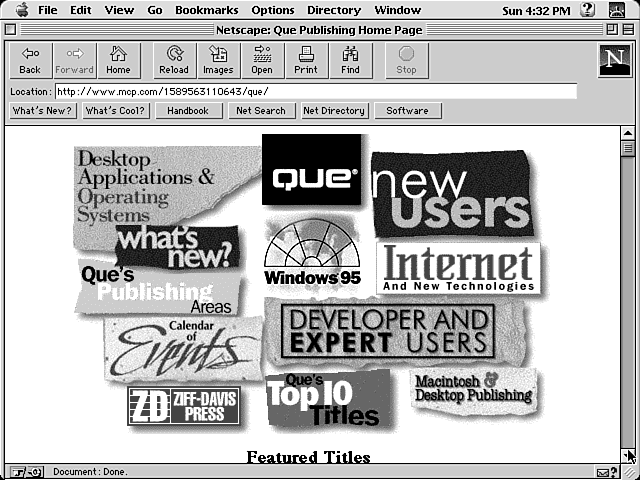 By simply pointing at part of the graphic, you may be able to bring up a URL in the status bar at the bottom of your browser bar (see fig. 12.1). This bar shows you where the various hot zones for the image map are and at what coordinates your mouse pointer appears.