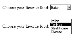 Figure 13.10 : Two <SELECT> menus-a pop-up and a fixed.