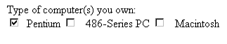 <INPUT TYPE="CHECKBOX" NAME="Pentium" CHECKED> Pentium