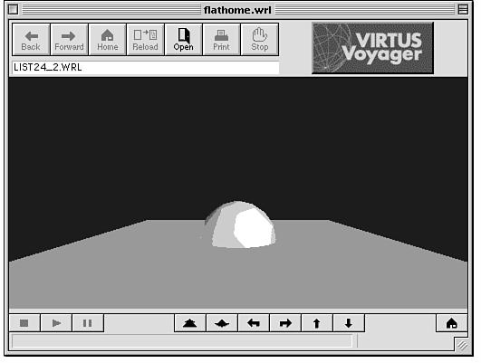 The VRML world would then be loaded into a helper application designed to give the user access to the VRML world, including controls for manipulating the VRML graphics in 3D (see fig. 24.2). Double-clicking different objects will generally send a command back to the browser, which can then move on to another URL.