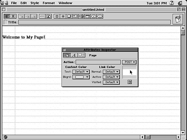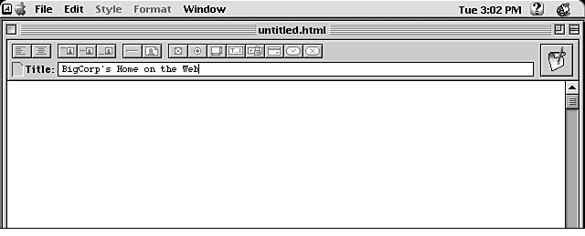 All you have left to do is add a title to the PageMill document. And, honestly, if you haven't figured out how to do this, I'm a little disappointed. (Actually, I missed it the first time around, too.)