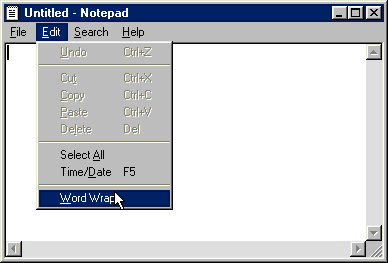 - Turn Word Wrap on by selecting Word Wrap from the Edit menu.