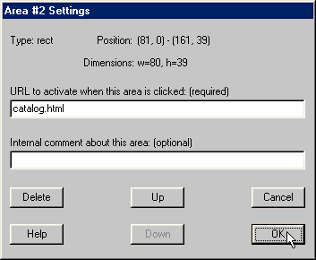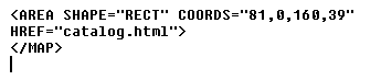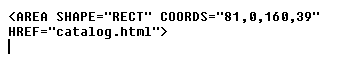 - Type <AREA SHAPE="RECT" COORDS= "81,0,160,39"