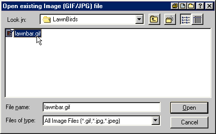 - Map This! will prompt you to open an image file. Locate lawnbar.gif