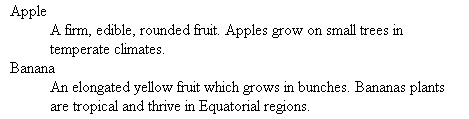 each item in a definition list contains two parts: a term and