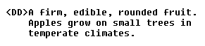begin a definition of the word apple, you would type <DT>Apple.