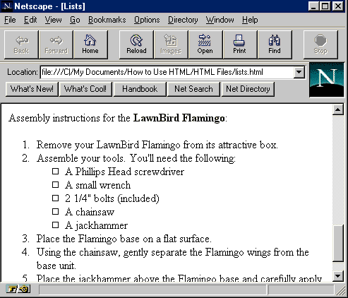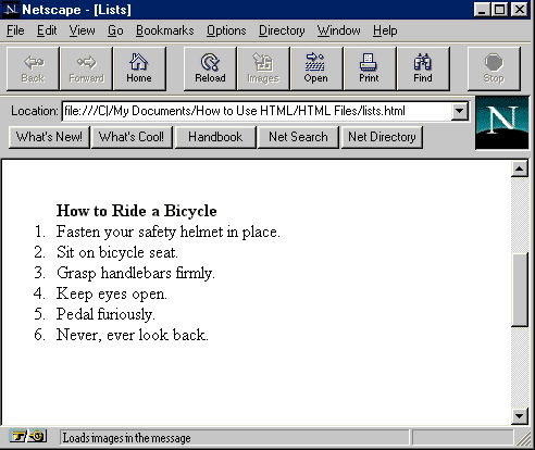 list. The Web browser will automatically format this new list