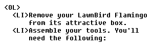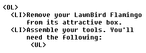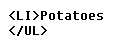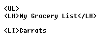 followed by the item. There is no need to include a closing </LI>