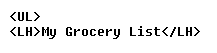you would type <LH>My Grocery List</LH>.