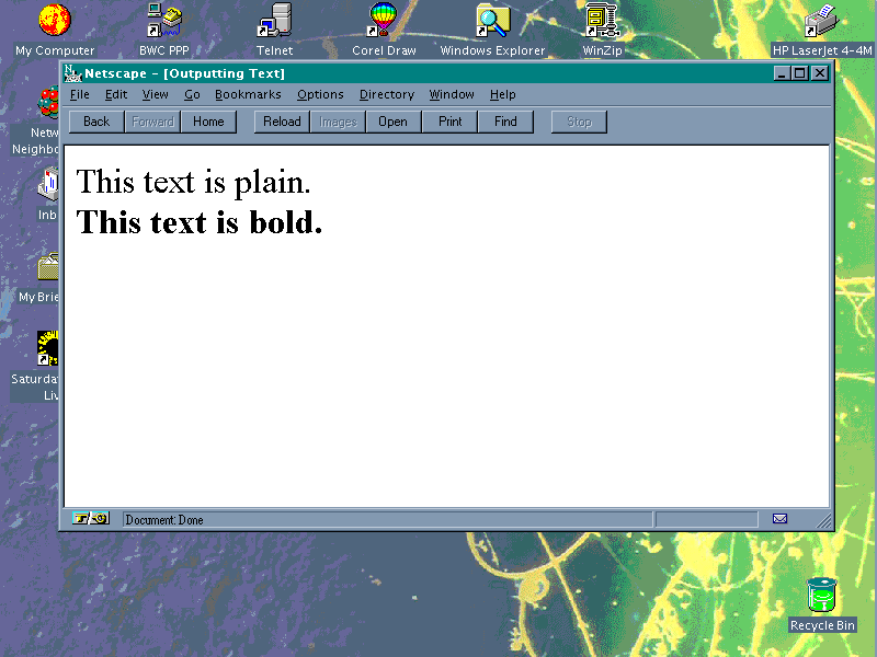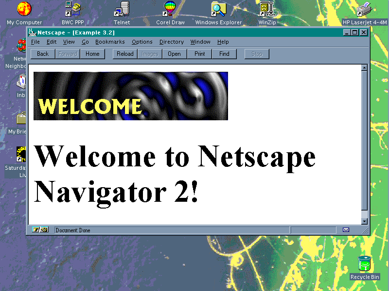 ". Welcome to Netscape Navigator 2.0!</H1>");