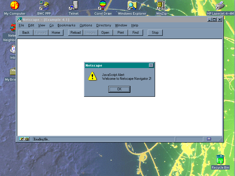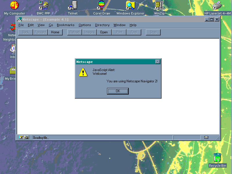 alert("Welcome to Netscape Navigator 2!");