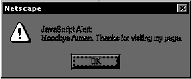 The first events you will learn to work with are load and unload. The load event is generated when a page has completed loading. Likewise, the unload event occurs when the user exits a page.