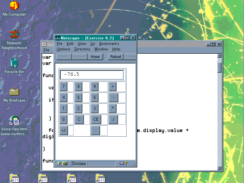 There are several points worth noting in this new version of the calculator program. First, you make use of the unary negation operation (-) in the changeSign() function.