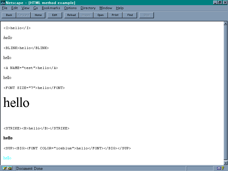 document.write("<XMP>" + sample.fontcolor("iceblue").big().sup() + "</XMP>");