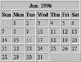 document.write("<TR><TH>Sun<TH>Mon<TH>Tue<TH>Wed<TH>Thu<TH>Fri<TH>Sat");
