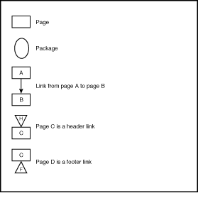 Figure 11.13 : Symbols for package, page, and link diagrams.