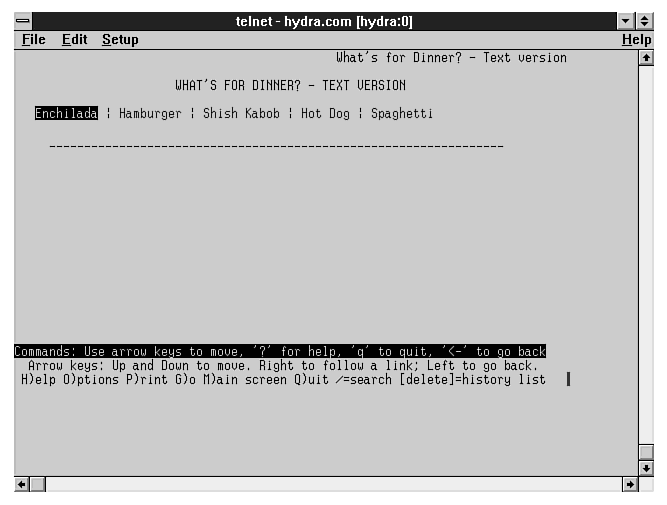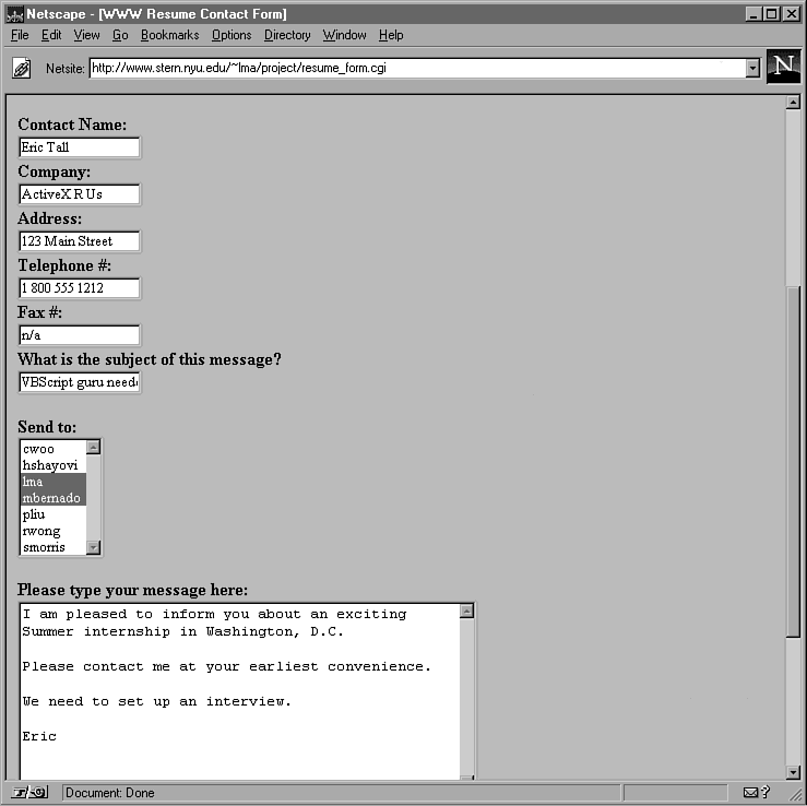 CGI programs sometimes rely on the contents of some of these variables to fulfill the client request. Other variables are not essential to logical processing but can be manipulated and echoed back to the user for cosmetic or informational reasons. Examples of both scenarios are given in this chapter. In bimodal.pl, the variable $ENV{'REMOTE_USER_AGENT'} is queried to determine the interface type. After that, I illustrate environmental variables serving a useful purpose in a Perl-to-e-mail gateway.