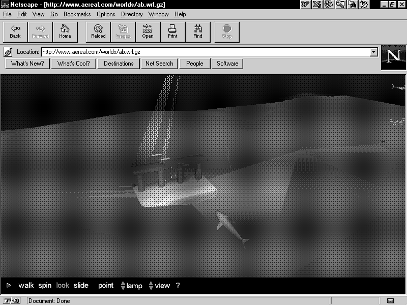 Unfortunately, Netscape Navigator does not provide plugin management software. This means that if you want to switch between different VRML browsers, it can get difficult. As a worst case scenario, you can try uninstalling one VRML browser and installing another. However, there is another way. You can rename the DLL file containing the VRML browser. Netscape Navigator looks for the first VRML DLL alphabetically. When I want to switch from Cosmo Player to Live3D in Windows 95, I choose Find from the Start menu, choose Files or Folders, and search for the file npcosmop.dll. After it is found, I rename it xnpcosmop.dll. The letter x in front places the DLL after the Live3D DLL in the alphabet so that Netscape will start the Live3D VRML plugin when it is rendering a VRML world.