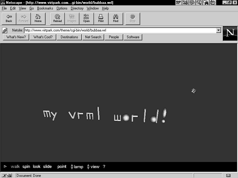 At this point, VRML 1.0 worlds are appearing all over the World Wide Web, and VRML 2.0 software and sites are starting to appear.