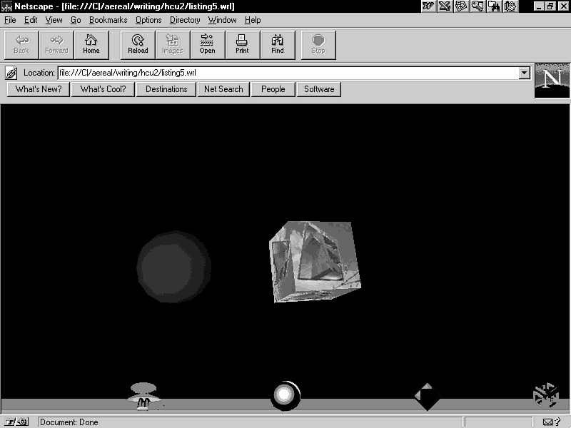 You might be familiar with using a mouse and windowed operating system now, but when they first were released, they took some time to learn. Similarly, navigation in three dimensions can be quite a challenge at first. In addition, the VRML browser companies still are learning how to design good user interfaces for easy use.
