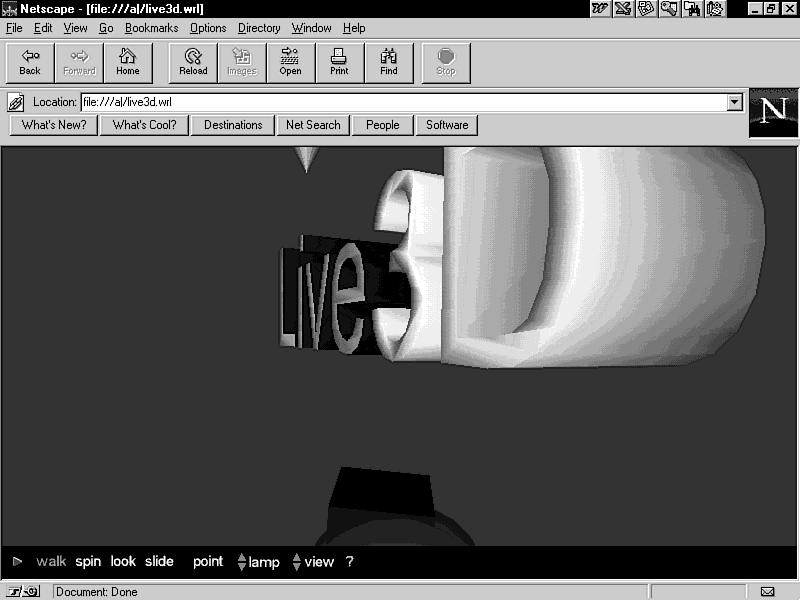 Live3D http://www.netscape.com/eng/live3d A VRML 1.0 browser from Netscape, which is built into the standard edition of Netscape Navigator 3.0.